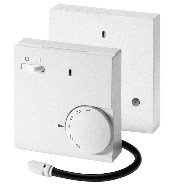 Termostaattia käytetään lattialämmityksen säätöön. Sisältää kehyksen.