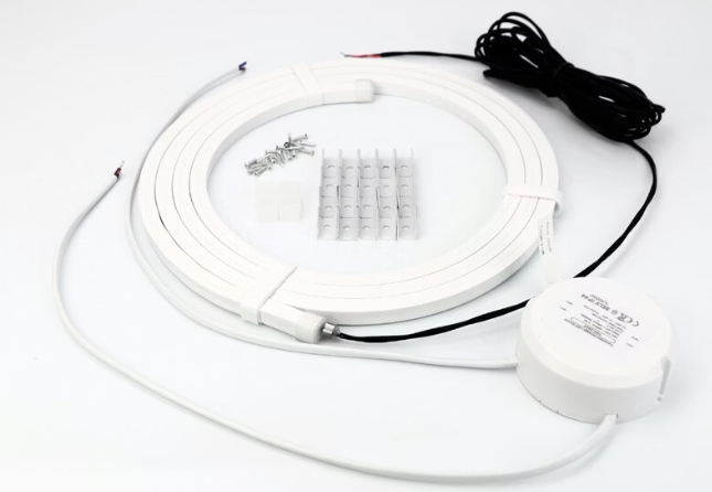 Led-valonauhasarja sisältää lämmönkestävän led-valonauhan 2,5 m (IP65), liitäntälaitteen (IP44) sekä ruuvit ja kiinnikkeet 20 kpl ja päätykappaleet 4 kpl.